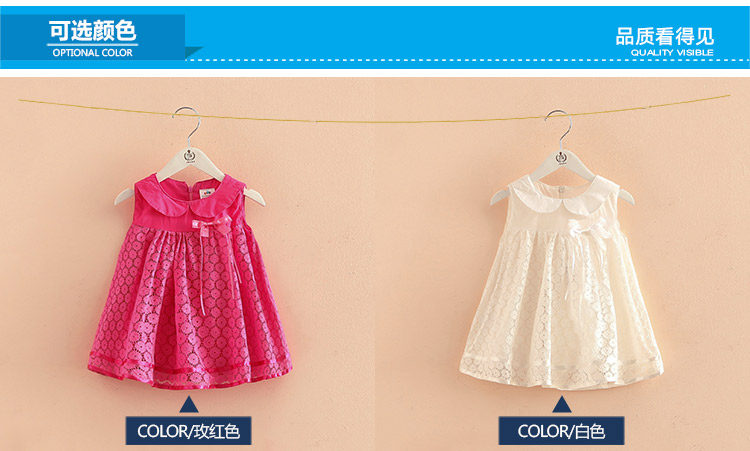 夏装娃娃领蝴蝶结女童童装背心裙 宝宝儿童连衣裙