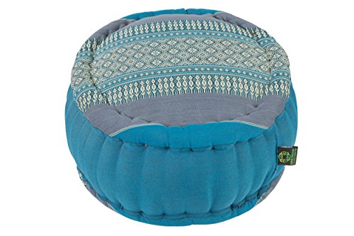 Kapok Dreams™ Zafu Round Meditation Cushion 100% Kapok, Blue Tones, Thai Design Pillow