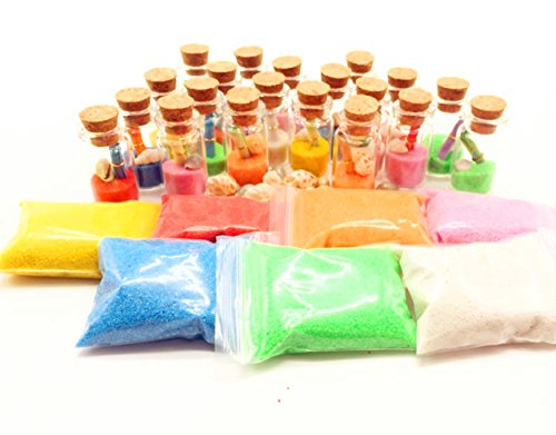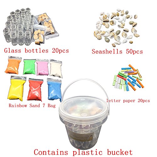 Glass bottles 20pcs + Rainbow Sand 7 Bag + Seashells 50pcs + Paper 20pcs+ Contains plastic bucket