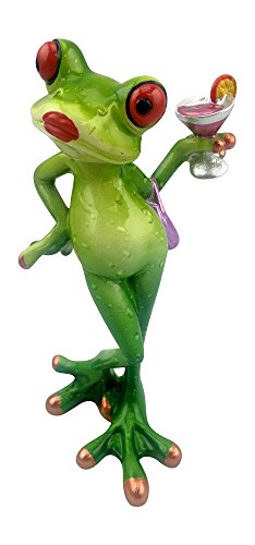 Novelty Frog Figurine - Lady Frog Holding a Cocktail