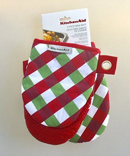 KitchenAid Mini Oven Mitt Set - 2 Pack- Christmas Plaid Red Green White