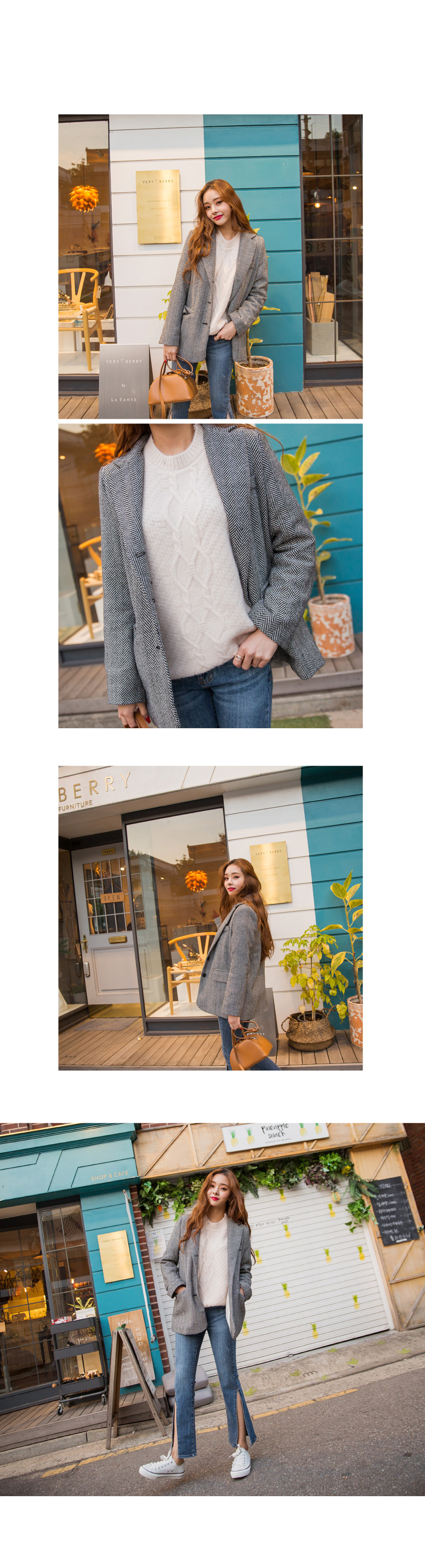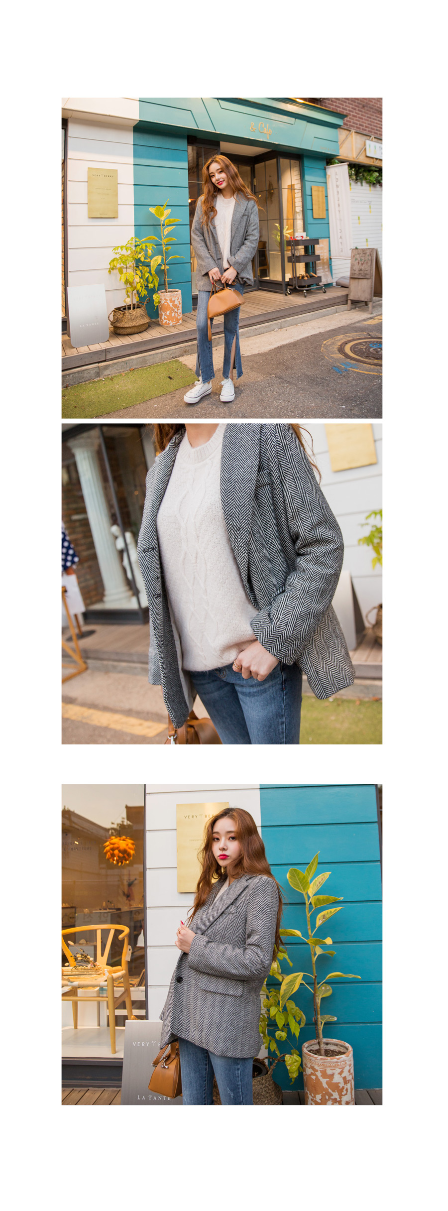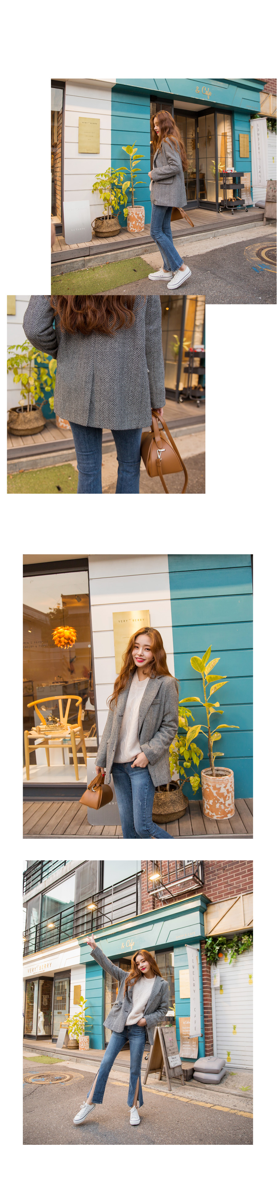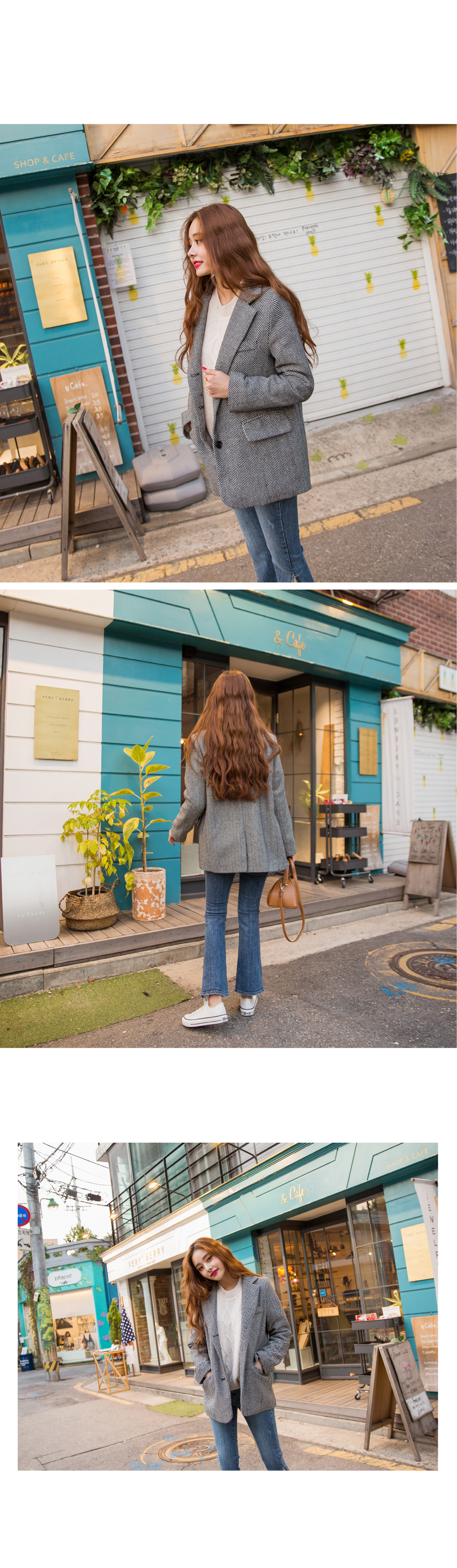 "메르시 그램 자켓"헤링본 패턴이 매력적인 자켓 소개해 드려요베이직한 듯 하면서도 잔잔한 헤링본 패턴감이포인트가 되어 멋스러움을 살려주었어요!앞판의 세 개의 버튼으로 클로징을 도와주어활동적인 움직임에도 변형없이 탄탄한 핏감이 유지된답니다 :)클래식한 자켓 찾고 계시는 분들께적극 추천드려요^^