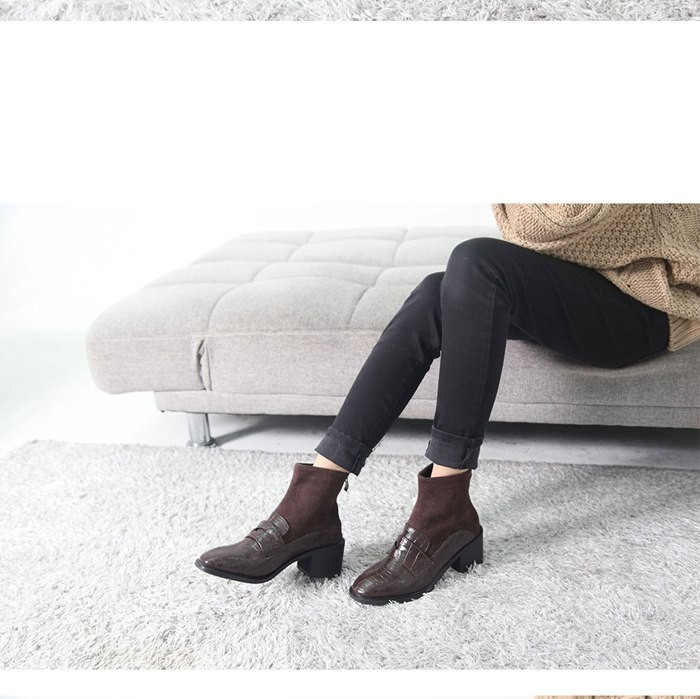 商品名:ショートブーツ レディース ローヒール 太ヒール 型押し 切り替え 2017 秋冬 ファッション 靴 婦人靴