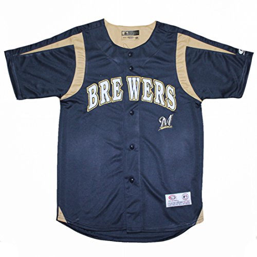 MLB Milwaukee Brewers Youth Dri-Fit Baseball Jersey / Embroidered Logo M Dark Blue