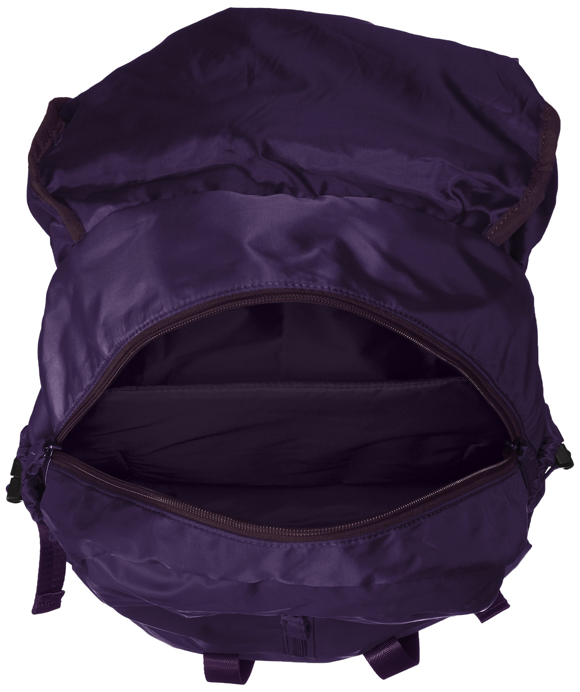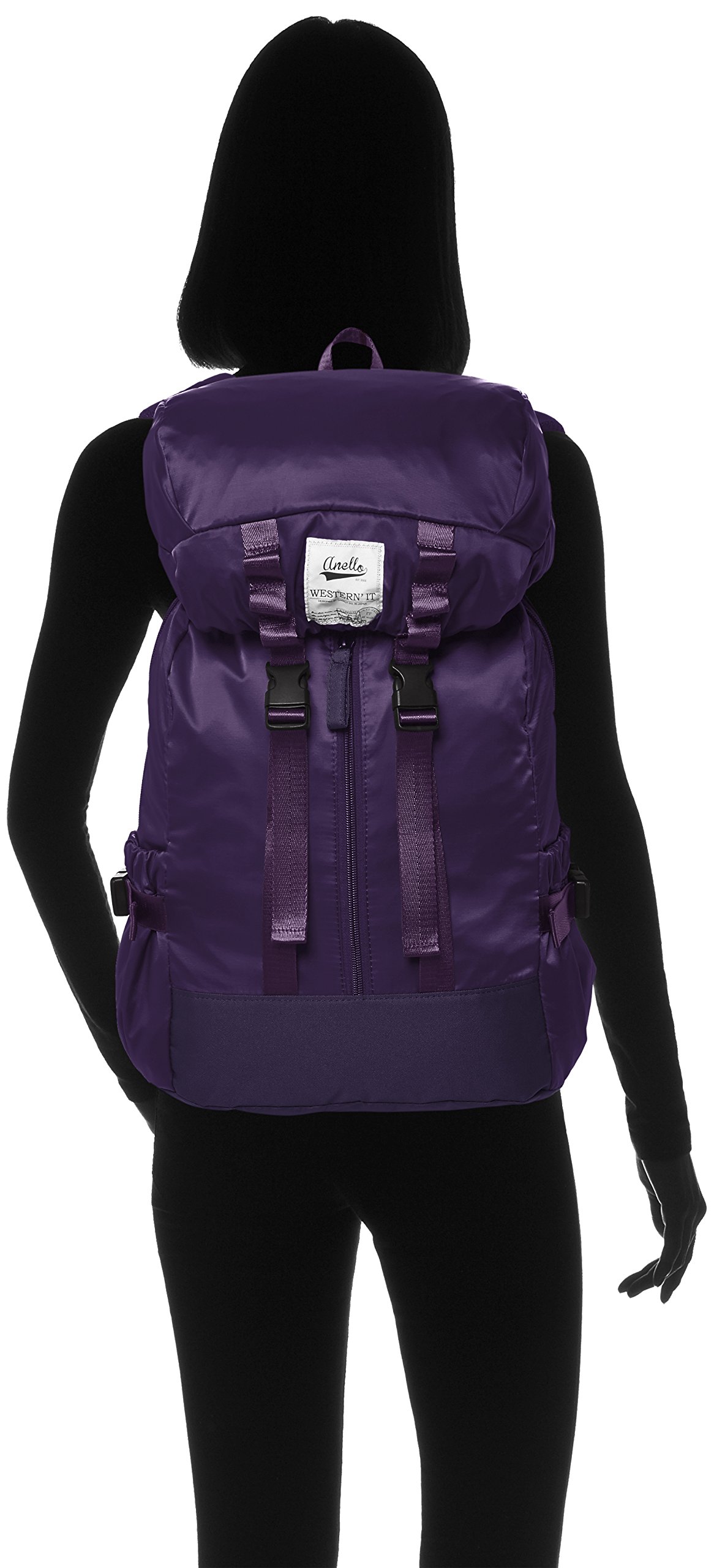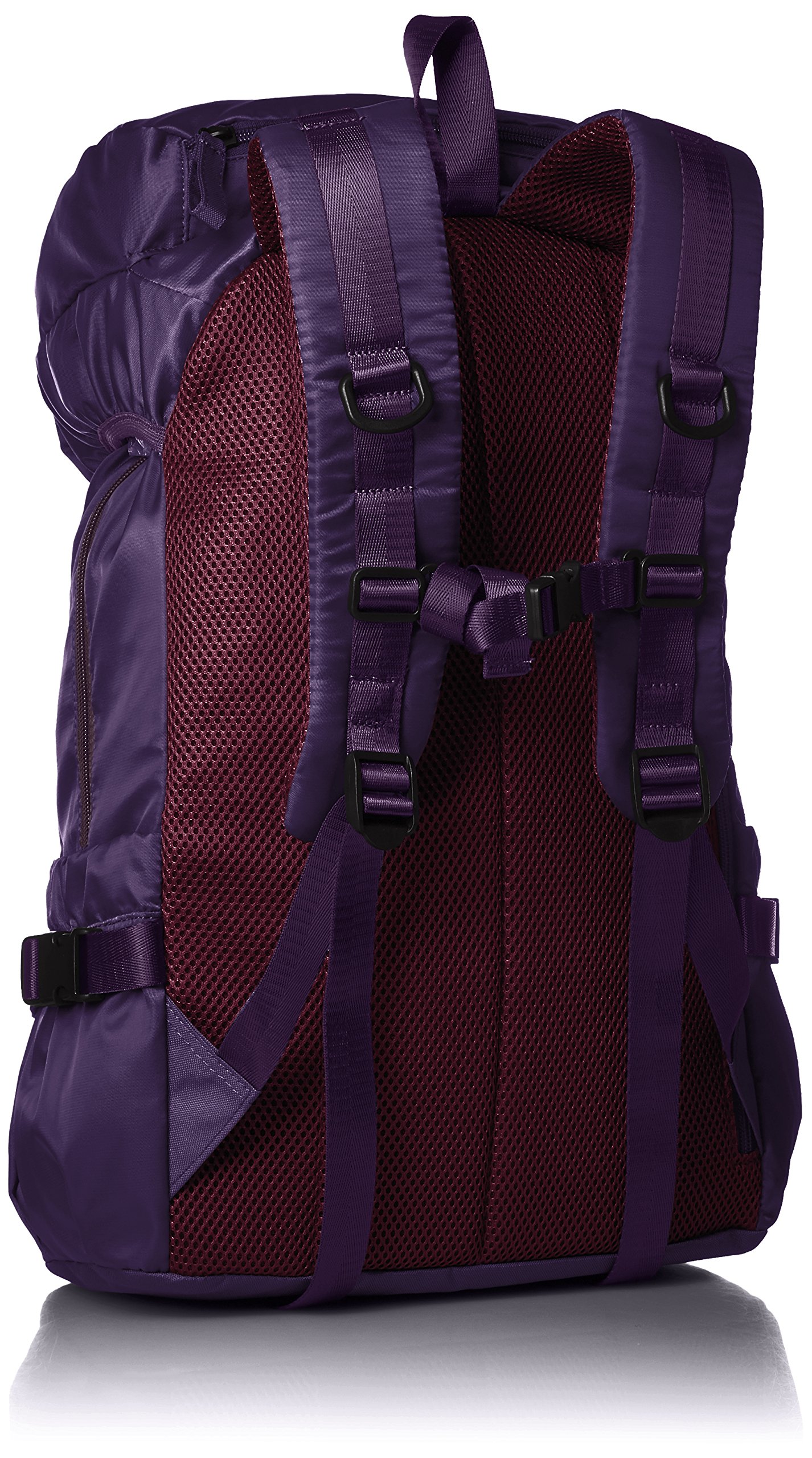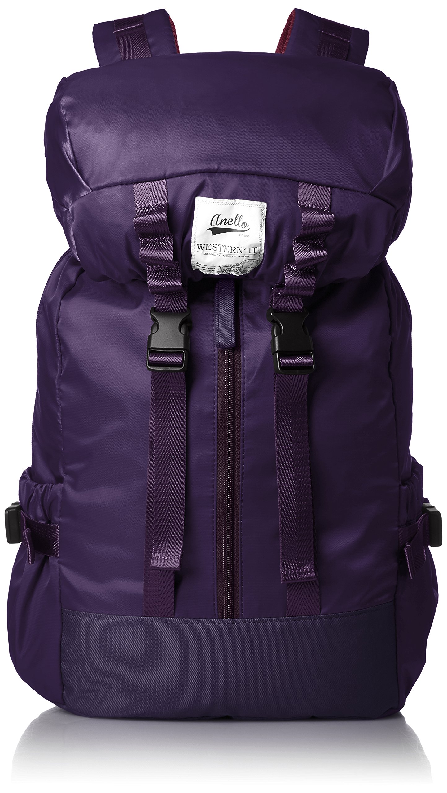 Full-size spec backpack with PC pocket and bottle pocket, heavy taped using fully elegant shiny high density nylon-like fabric.