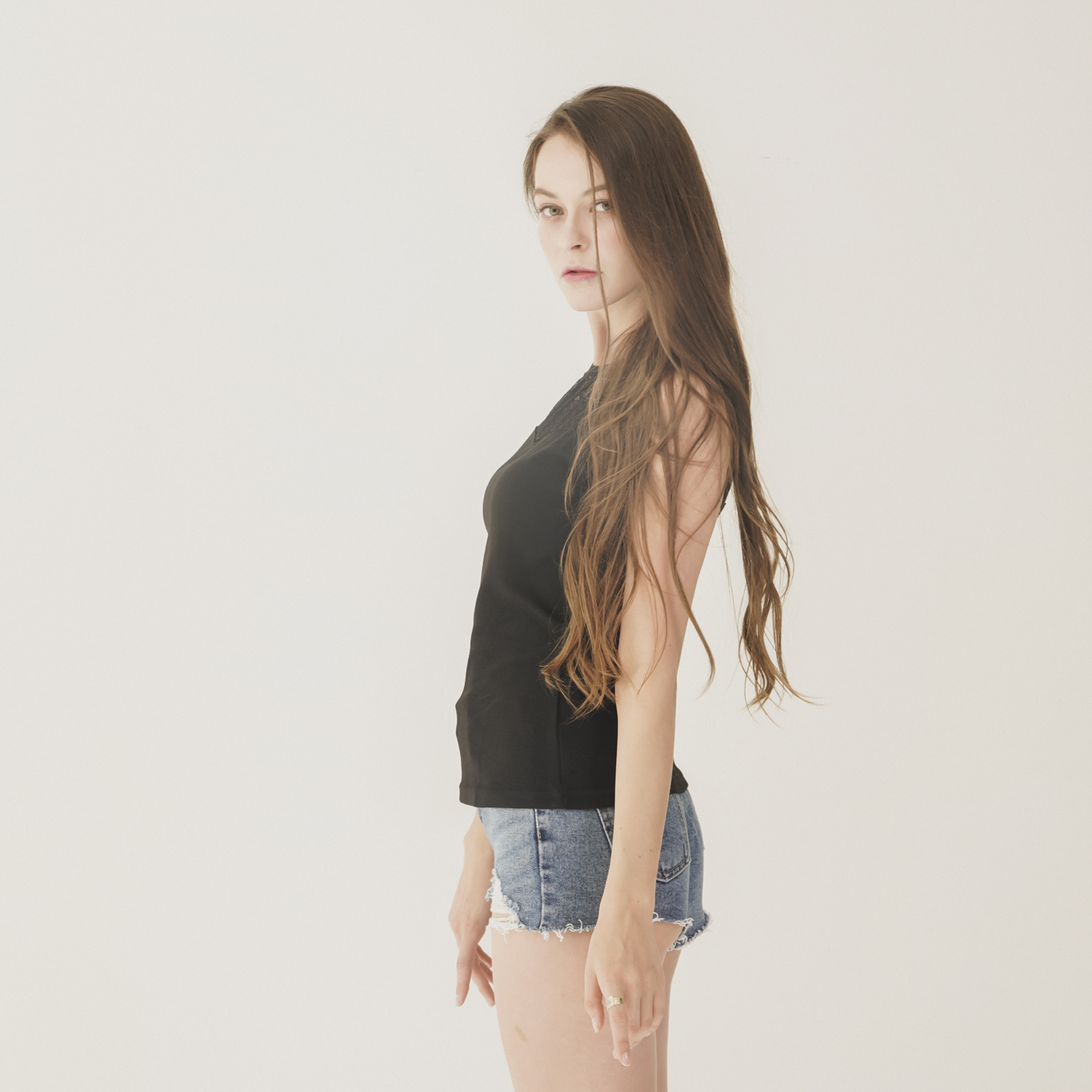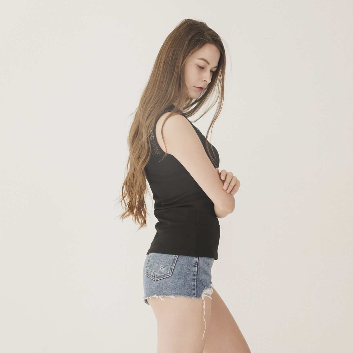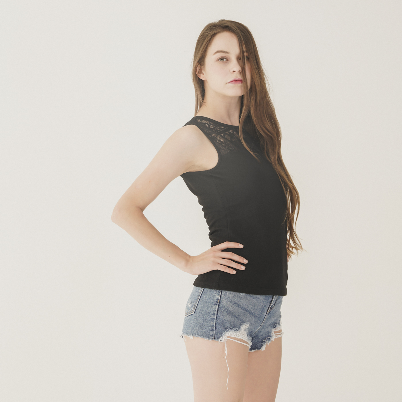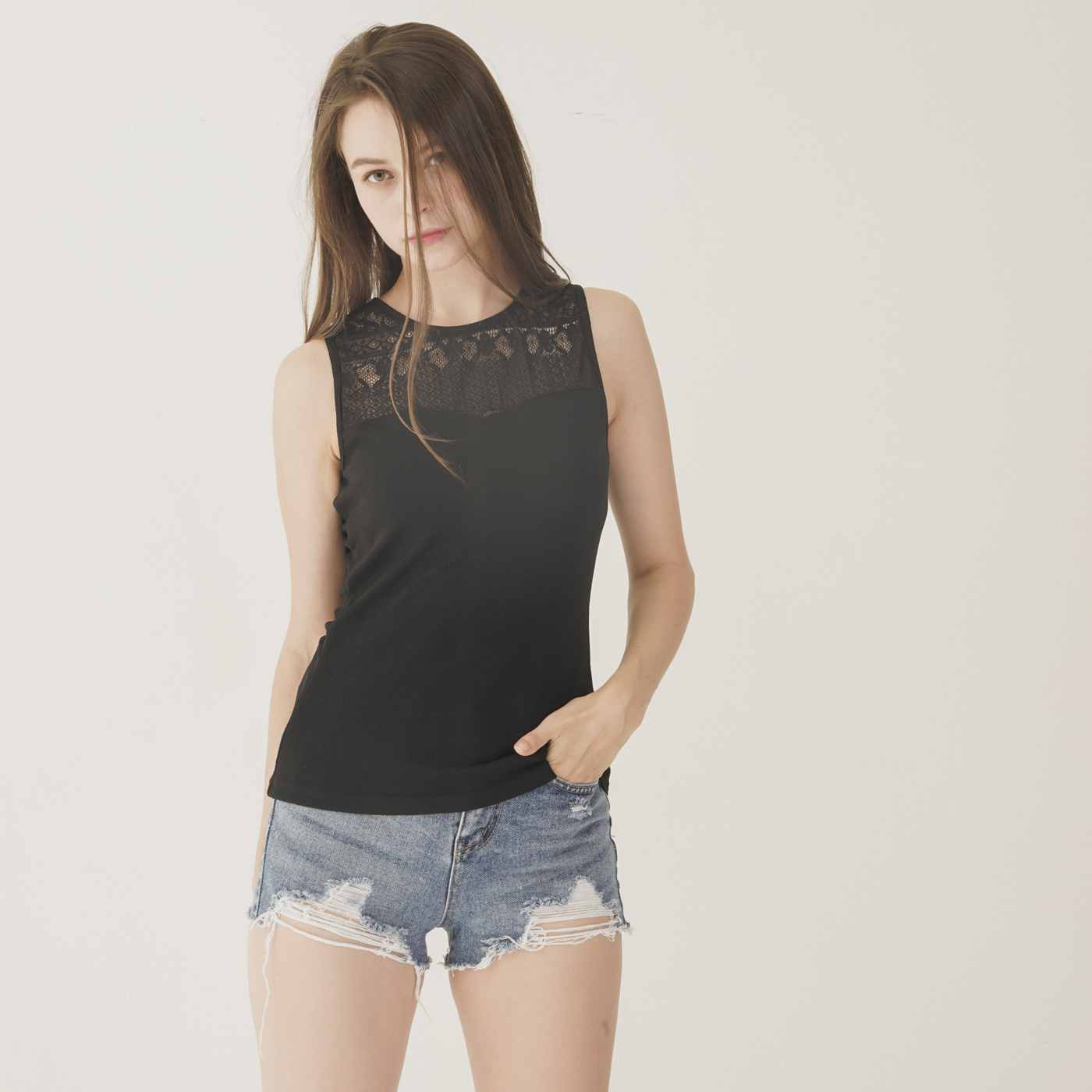 레이스 디자인이 예쁘고 시크한 민소매 탑입니다.