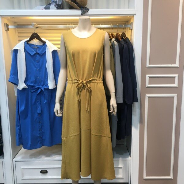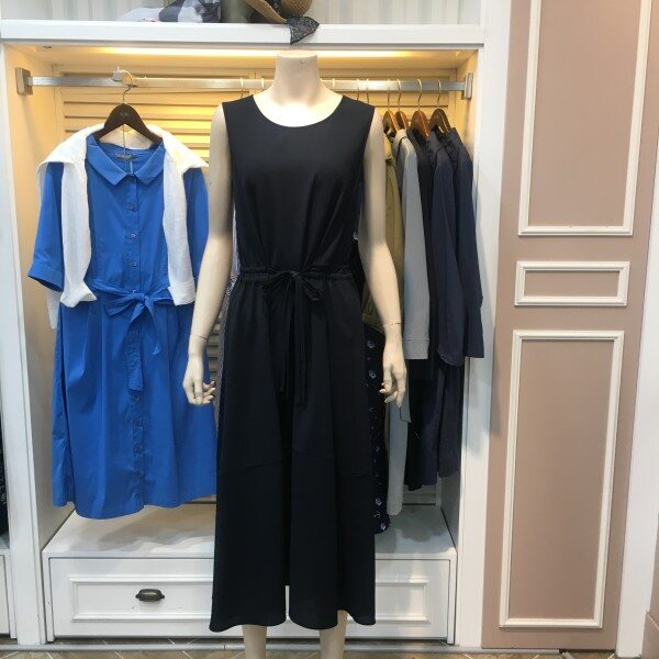 허리 끈 포인트 롱 원피스입니다