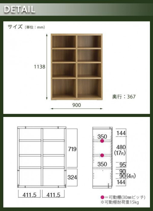 用途に合わせ組み合わせや向きを自由に変える事ができる、オープンタイプの棚です。 製造国:日本 素材・材質:プリント化粧板 商品サイズ:W900×D367×H1138mm 仕様:完成品可動棚板:4枚可動棚板耐荷重:15kg(1枚あたり) 付属品:固定金具、棚ダボ、説明書 ※サプライヤー直送品  ご注文後3~4営業日後の出荷となります【商品名】フナモコ 日本製 LIVING SHELF 棚 オープン 900×367×1138mm ホワイトウッド・LFS-90