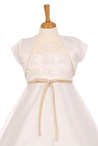 This simple satin short sleeve bolero by kids dream is the perfect addition to absolutely any special occasion outfit. Choose white to complete you holy first communion or confirmation look. Ivory is also a color that goes great for a baptismal cover up or even a great shade to go with the frosty soft spring hues. Black works great for graduation and fall and winter events as well. Whatever the occasion this bolero is the perfect girls cover up and it truly completes the look. You need this bolero for your next special event.Feature