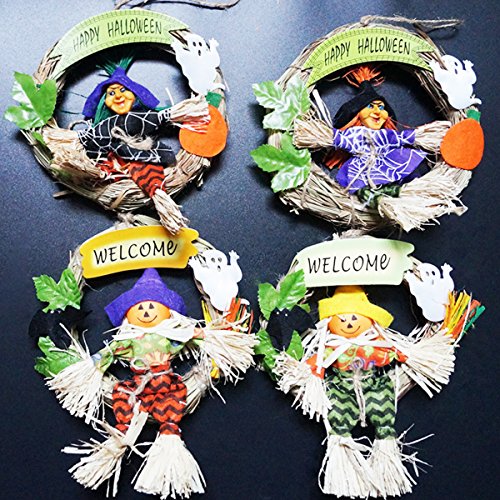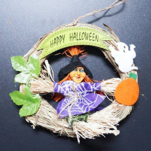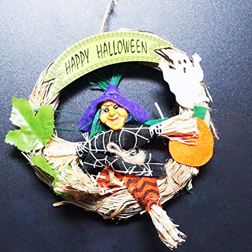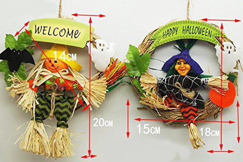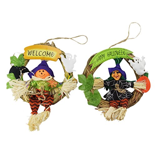 KEFAN 2 Pack Halloween Hanging Decoration Halloween Wreath Witch and Pumpkin Set Happy Halloween Ornaments, Random Color