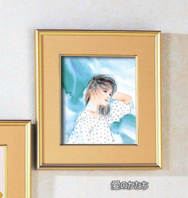 | 淡く抒情豊かな水彩画で優しく描かれた慶文の可愛らしい絵をセットにした色紙額。慶文が描いた淡い色紙絵を、豪華な金のフレームにセットしました。 |