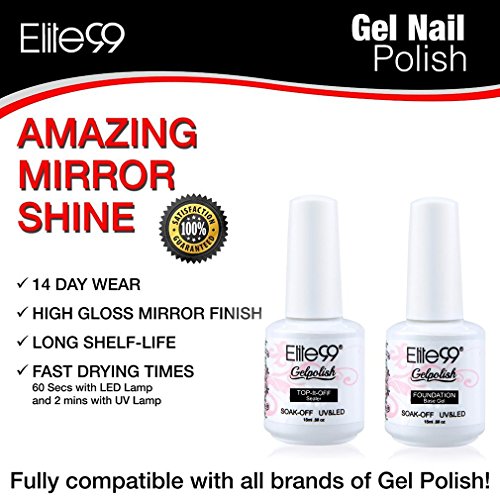 Elite99 Nail Polish Soak-off TOP & BASE COAT Foundation Sealer Primer UV LED Gel Lacquer 15ML, Manicure Kit 2pcs