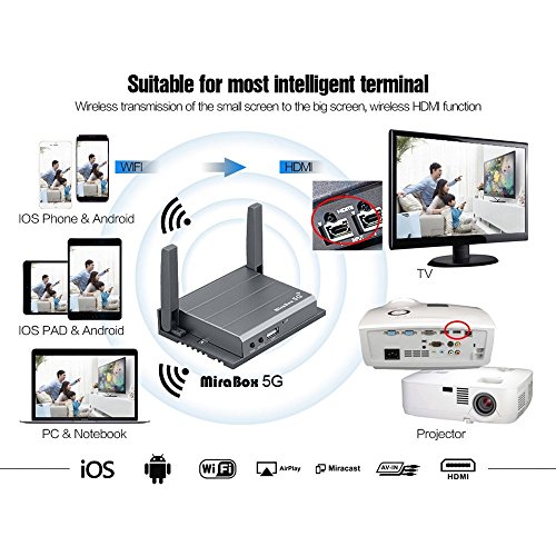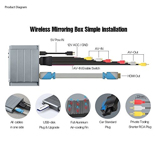 Mirabox 5G Car Mirroring Box with RCA/CVBS and HDMI Ports Car Wifi Mirrorlink Box for iOS10 and Android Devices AirPlay Miracast Support Youtube