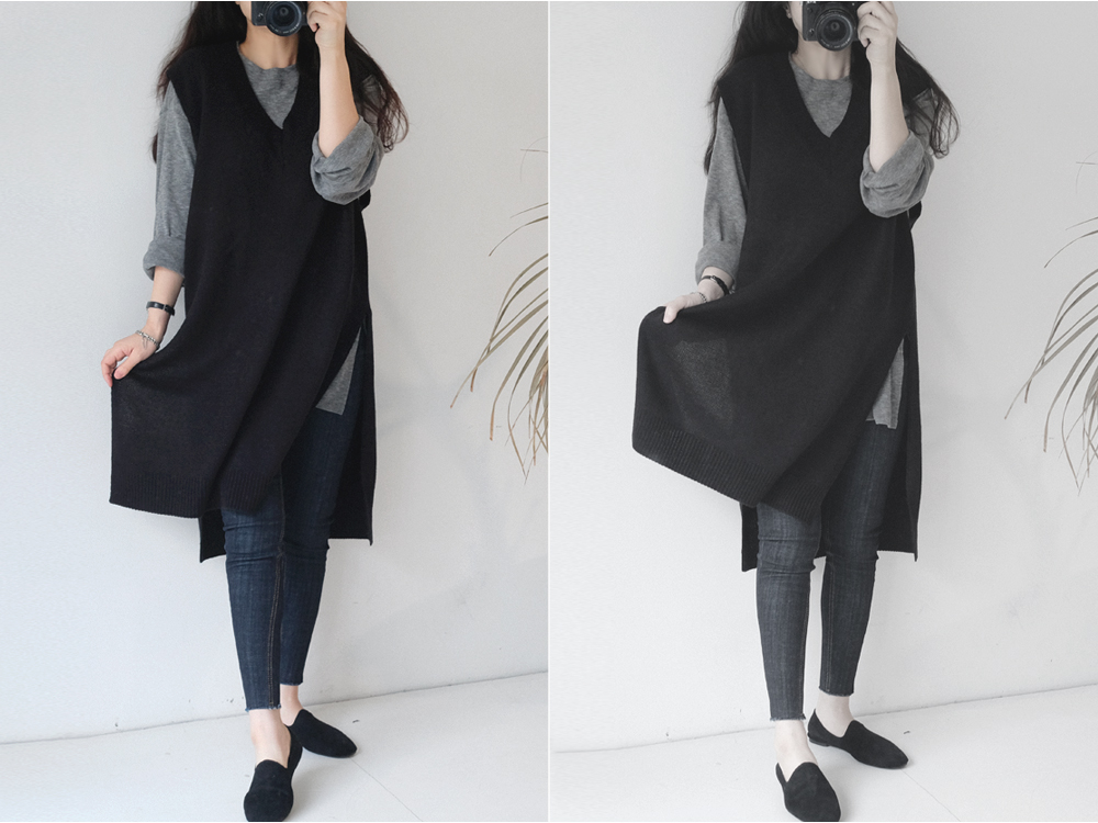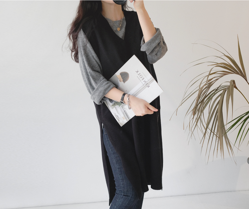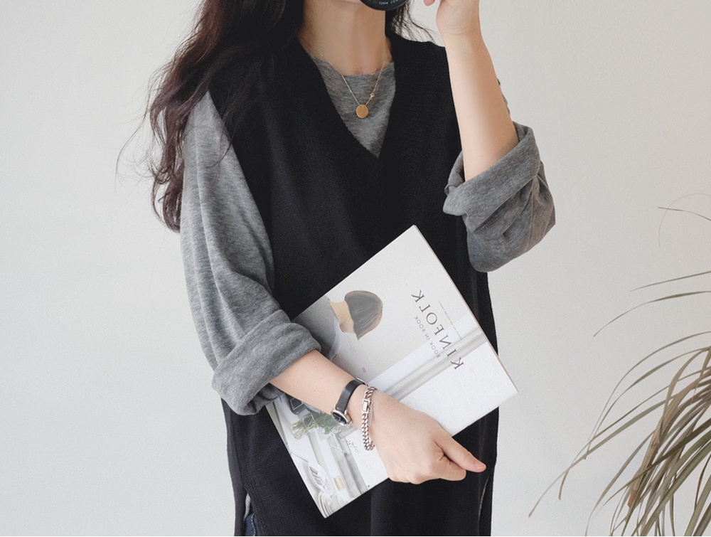 여유로운 핏감의 롱니트조끼 소개해드려요~
