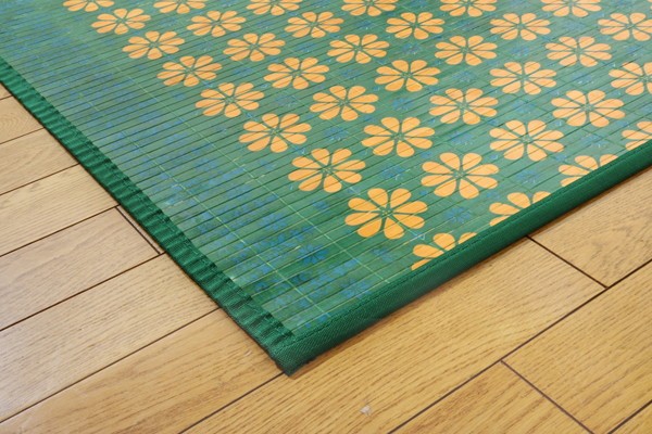 かわいらしい花柄をプリントした、カラフルでポップな竹のラグです。竹のひんやりとした質感をお楽しみください。裏面には床を傷つけにくい不織布を使用しております。竹は他の木材に比べると格段に成長が早く(3~5年で成竹)、持続的生産が可能な環境に優しいサスティナブルな素材です。