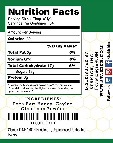 Stakich CINNAMON Enriched RAW HONEY - 100% Pure, Unprocessed, Unheated - 40 oz