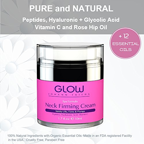 Our SPA neck firming cream is a deep penetrating rich moisturizer for daily use to nourish loose skin and wrinkles on face, neck and decollete. - The formula is enriched with Peptides, Hyaluronic Acid and Vitamin C which in combination with our added botanicals help Firm, Plump and Smooth skin. Non Scented, Large 1.7 oz
