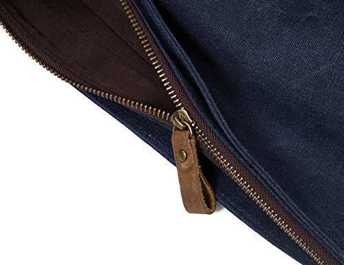 -. Feature : Eco-friendly washed density canvas material, leather embellishment, cotton lining with vintage metal hardware / Caual and simple design, well sewn craftsmanship; Easy to carry A4 books / Overall dimension: Approx. 15.7"L x 15.9"H x 3.9"W/ 52" length adjustable shoulder straps, which can be worn over the shoulder or cross body style / Exterior features a front zip pocket, 2 open pockets and backside zip pocket, this is the perfect spot to keep valuable items; interior features 2 open pockets and a zipper pocket. / Please allow little color difference due to different camera or light environment; Little smell is normal, putting it outside for few days,the smell will disappear.