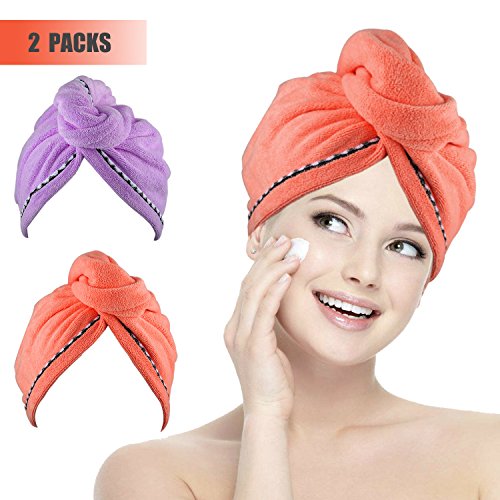 -. Feature : SUPERIOR MATERIAL: Made of high-quality microfiber, this towel is super absorbent and ultra soft. Make your hair quickly dry without hair damage or moisture losing! It is enlarged and thickened. One size fits all! / TIME SAVING: The towel will stay on your head perfectly so you can make up, get dressed, have some coffee or relax in a nice bubble bath bath while waiting for your hair to get dry! / SIMPLE & PRACTICAL: Dry your hair in a natural and simple way without electric drier. Easily wrap your hair after shampooing and then fix the towel on your head with secure button attached it. This towel is suitable for daily use at home, at the gym, and while traveling. / DURABLE & WASHABLE: Microfiber hair towel is much better and more durable than cotton towels. It is not easy to fade and pilling relatively. The towel is washed friendly by hand or machine. / LIGHTWEIGHT & PORTABLE: Not only is it ultra light which allows you take it anytime anywhere, but also the hair towel is gentle to skin and able to avoid split ends as much as possible.