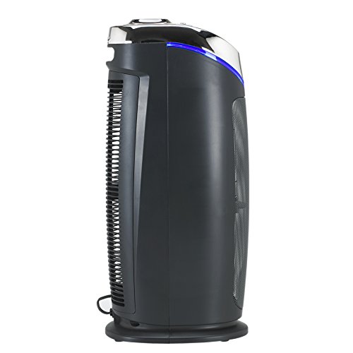 GermGuardian AC4825, 3-in-1 Air Cleaning System with True HEPA, UV-C and Odor Reduction stands at 22-inches and has multiple levels of cleaning to capture allergens, kill airborne viruses and bacteria, and destroy mold and odors. It is ideal to use in medium-size rooms and is CADR rated 100+.
