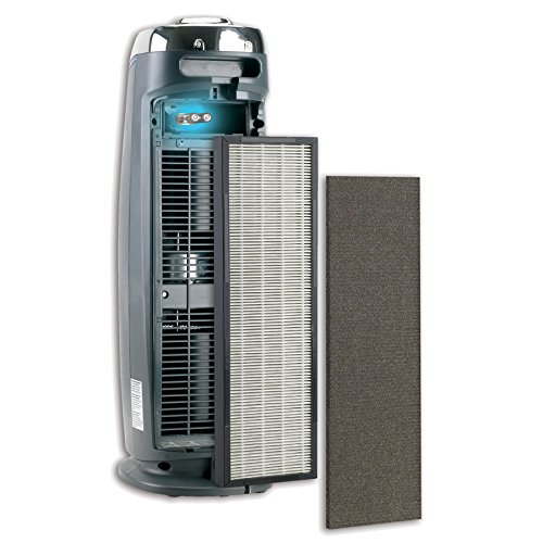 First, a pre-filter and a charcoal filter combine to capture large particles like dust and lint, as well as destroy common household odors. Then, a True HEPA filter captures 99.97 percent of airborne particles, as small as . 3 microns in size, such as dust mites, debris, mold spores, plant pollens, and pet dander. According to the American Academy of Pediatrics Allergy & Immunology, doctors recommend HEPA air filtration systems to reduce exposure to indoor asthma triggers. Finally, UV-C light technology works to help kill airborne viruses and bacteria while Titanium Dioxide is activated by the UV-C light to decompose odor molecules caused by smoking, cooking, and pets.