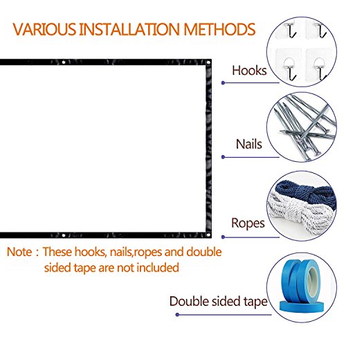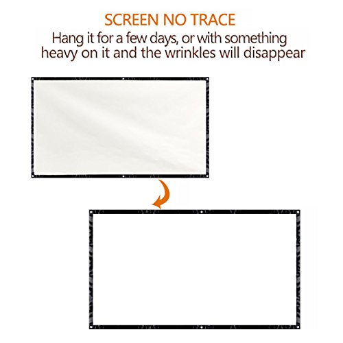 Features : The screen can be permitted to set up easily and quickly. It is the best choice for home theater, small meetings, and camping. It's not an ordinary piece of paper but a piece of the high quality material with white matte of pvc. The surface is clean and 1.1 gain diffuses light in all directions. It provides a 160 degree HD viewing area.