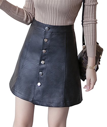 -. Title : ELPIS レディース プチプラ クール スタイリッシュ 人気 トレンド カジュアル フロント ボタン PUレザー 台形 Aライン タイト ミニ スカート 美脚 脚長 ブラック S M L XL(XL)