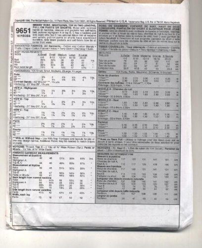 -. Title : McCalls Endless Options Robe, Gown, Nightshirt, Pajamas Sewing Pattern 9651