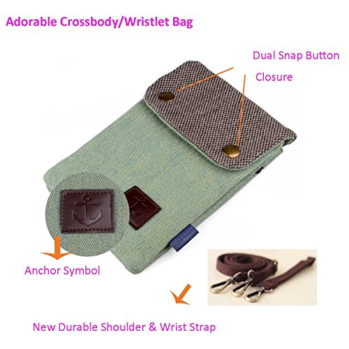 Shiaili Women Simple Solid Durable Canvas Fabric Large Crossbody Wallet Purse Cute Cell Phone Pouch for iPhone 6S/6 Plus Samsung Galaxy Note 5 4 with Wrist Strap Green