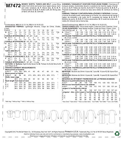 -. Title : MCCALLS M7472 (SIZE 14-22) Misses' Raglan Sleeve, Button-Down Shirts and Tunics SEWING PATTERN