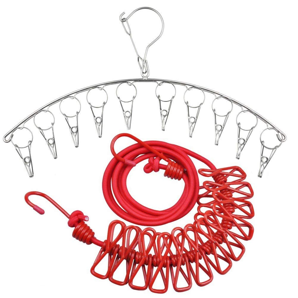 【便利物干しセット】❤ピンチハンガーと洗濯ロープを合わせて物干しセット、ロープの両端にフックが付き、引きかけに大変便利です。家にもちろん、旅行、出張に持ち運び便利です。