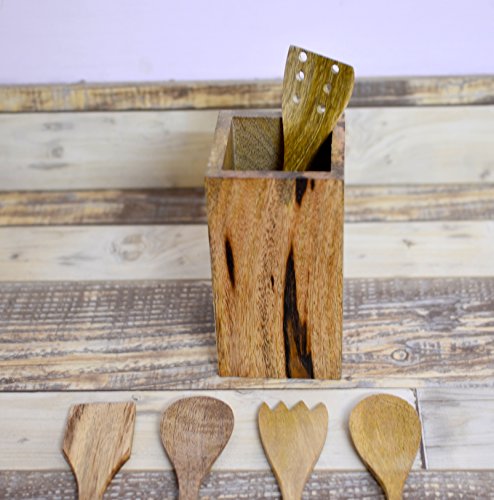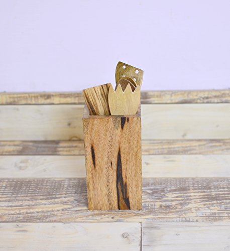 Rusticity Wooden Kitchen utensil/cutlery holder |Mango Wood | Handmade |( 8.6 x 4.2 in )