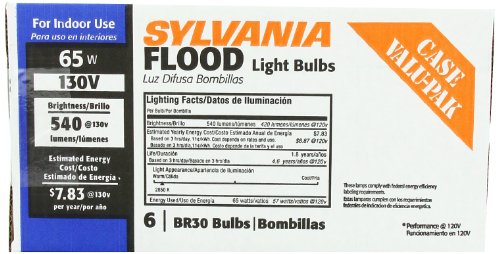 Sylvania 65W BR30 Indoor Flood Light Bulbs, Soft White 130V - 15172 - Dimmable (6 Pack)