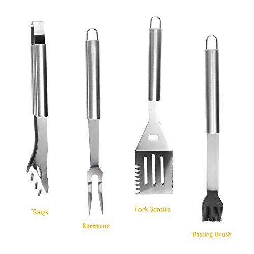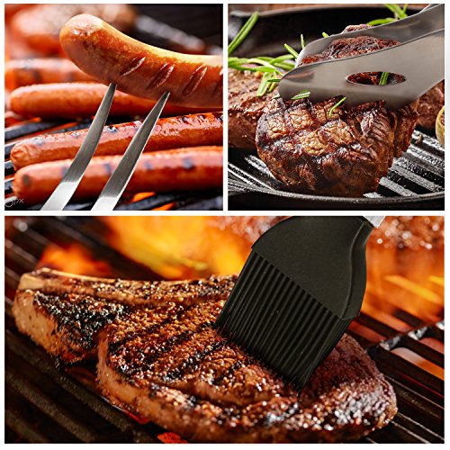 PREMIUM STAINLESS STEEL- Made of durable stainless steel, Our BBQ Tools Set is heavy duty, rust-free, and long-lasting with non-slip stainless steel handles to provide you the most comfortable cooking experience.