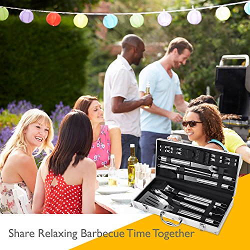 FYLINA BBQ Grilling Set 18-Piece Stainless Steel Utensils Barbecue Tools Grill Accessories with Aluminum Storage Case - Perfect Outdoor Grilling Kit
