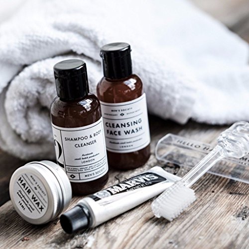 THE COMPLETE PACKAGE: The men's gym prep kit comes packed with 50ml. of our cleansing face wash, 50ml. of the shampoo and body cleanser ,15ml of natural hair wax, a disposable toothbrush, and a travel tube of Marvis toothpaste.