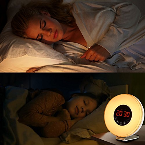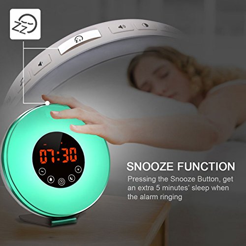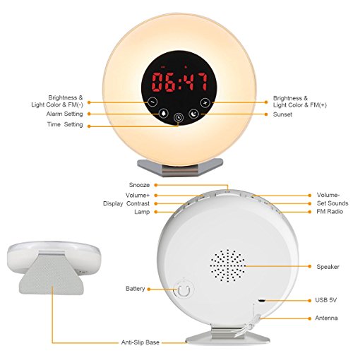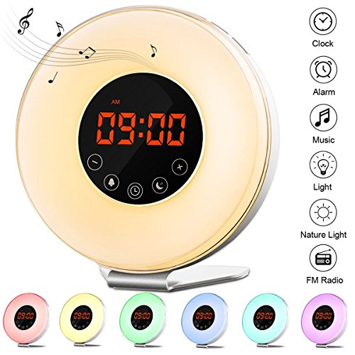 Do you have trouble waking up in the morning or falling asleep at night? Don't worry, Yosoo 2017 Upgraded wake up light digital sunrise alarm clock could be use as a bedside lamp, atmosphere lamp, alarm clock and FM Radio & Snooze Function.
