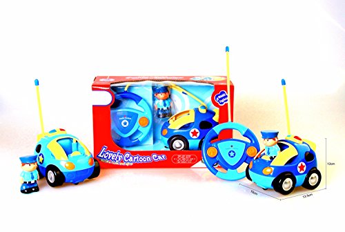 -. Feature : PERFECT RC Police CAR: 2 Large Buttons, perfect for toddlers inquisitive and growing hands, control the driving. 1 button for driving forward and 1 button for driving backward. Easy to reach On/Off switch. Rubber ended antennas keep your child safe. / GREAT QUALITY GREAT SPEED POLICE CAR-Lightning Fast Cartoon R/C Police Car for Children / INTERACTIVE LIGHTS & MUSIC: Press on steering wheel for engine startup sound to play. Tap the removable race car driver on the head and a fun song starts playing! Zoom around in this fun race car for hours on end! / EDUCATIONAL HAND EYE CO-ORDINATION: Learning starts at a young age and controlling an RC car helps your child develop necessary skills in hand eye coordination and fine motor skills. Reactions time and coordination get better and better as they have fun driving a car! / CHILDREN MUSICAL REMOTE CONTROL TOYS: Removable policeman action figure.Easy 2 button controls make driving easy while a bunch of fun buttons keep your child intrigued! When you press the removable race car driver on the head a fun jingle starts to play, ready to be danced along to.