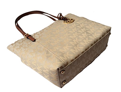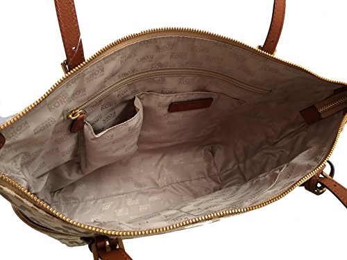 -. Binding : Apparel -. Brand : -. Color : Beige Camel & Lage -. Department : womens -. EAN : 0889154010338 -. Feature : Monogram block print jacquard with lage brown leather trim and brushed golden hardware / Lined interior with zippered pocket and 4 open slip pockets / Zippered top closure with side gusset pockets / Dual leather straps with a drop of about 8.5" / Measures approximately 11" (L) at the bottom tapering to 15" (L) at the top x 11.5" (H) x 4" (W) -. Model : 35S5GTTT8J -. MPN : 35S5GTTT8J -. PartNumber : 35S5GTTT8J -. ProductGroup : Shoes -. ProductTypeName : HANDBAG -. Size : Medium -. Title : Jet Set East West Top Zip Tote in Beige & Camel -. UPC : 889154010338