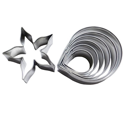 Yunko Austen Roses and Leaves Shape Stainless Steel Fondant Cutter Birthday Party Art Cake Decorating Tools 7pcs / Set