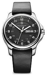 -. Title : Victorinox Black Dial Stainless Steel Leather Quartz Male Watch 241549 - No Knif