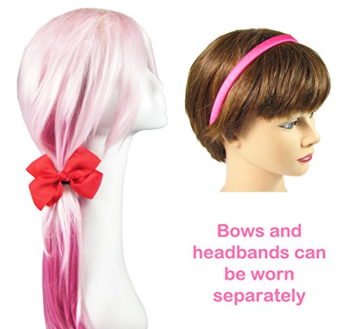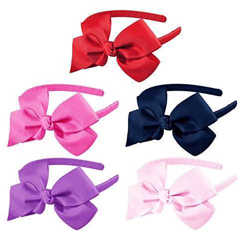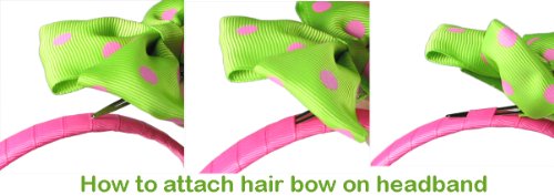 - Hip Girl Boutique grosgrain ribbon wrapped headbands with interchangable hairbow clips to match outfits, dresses. 5pc 1/2" inch wide classic hard headwears (not stretch rubber elastic headwrap). Grosgrain ribbon are wrapped on plain craft non-tapered plastic headband blanks. 1/2 in thick ( 12 mm wide ). Big matching bows are 4.5" wide. Wholesale bulk package set includes 5 pieces lot of headbands and 5pc single prong alligator hair clips. Just slipped the clip into the headband.