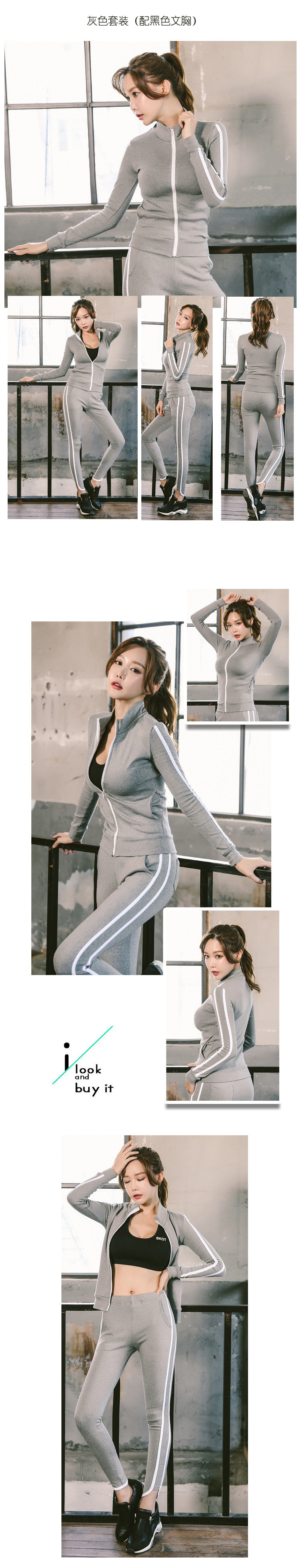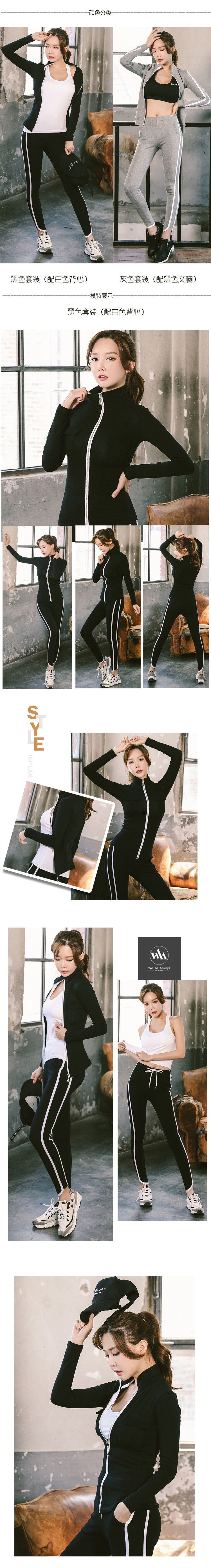 秋冬运动套装女健身房健身服三件套瑜伽服立领显瘦长裤跑步服