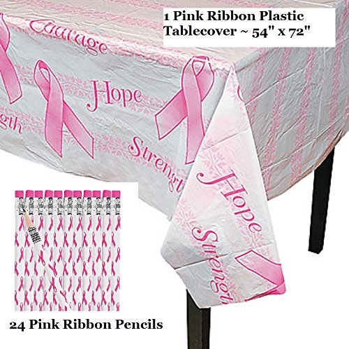 Pink Ribbon Breast Cancer Awareness Set ~ 1 Tablecover / 24 Pencils ~ New