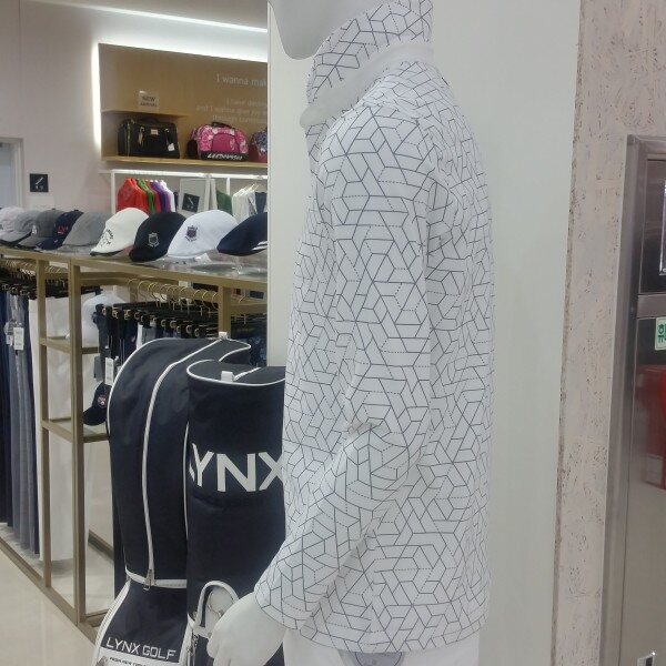 기하학 프린트가 포인트,스포티한 기능성셔츠입니다.