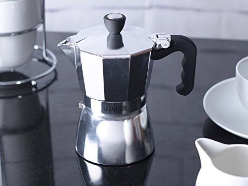 This simple product produces a wonderful classic espresso easily and, economically. By simply placing the correct level of water at the bottom of the pot, placing a high quality espresso grind coffee in the inner chamber and setting on your stovetop at a low temperature you will have a beautiful cup of espresso to make your favorite coffee house drink at home. Classic design and excellent quality add to the value of this piece.Feature