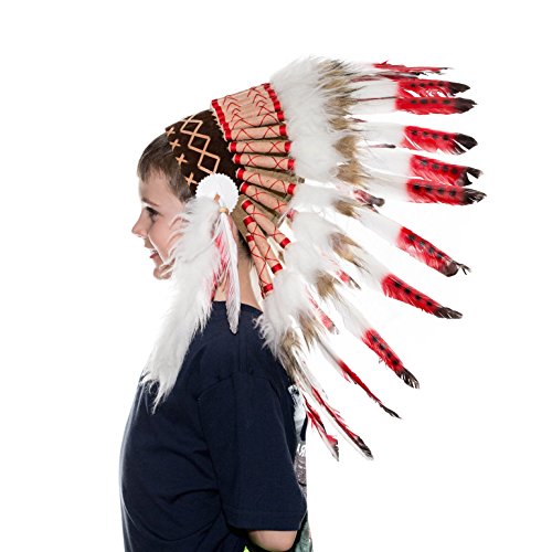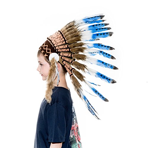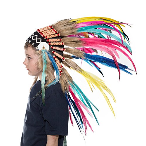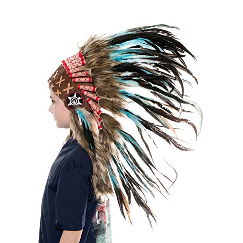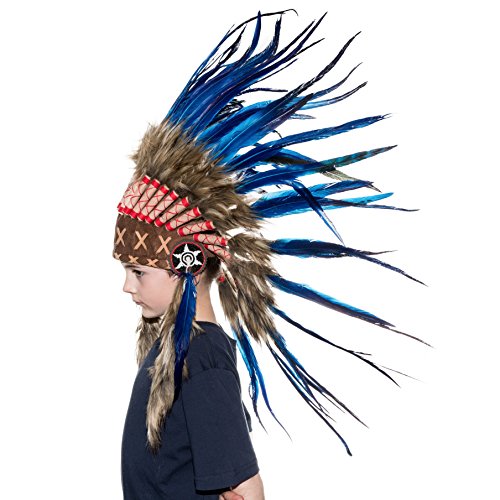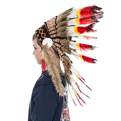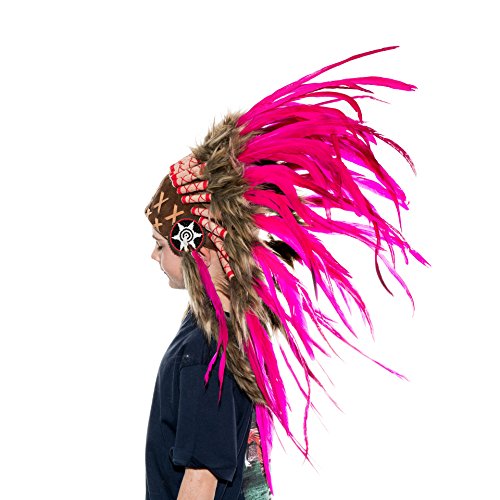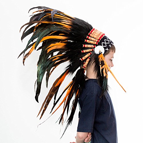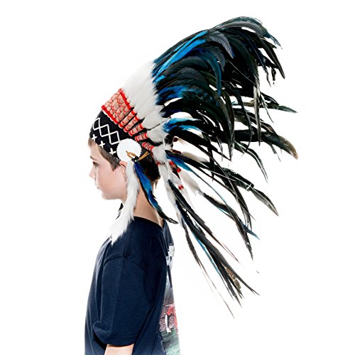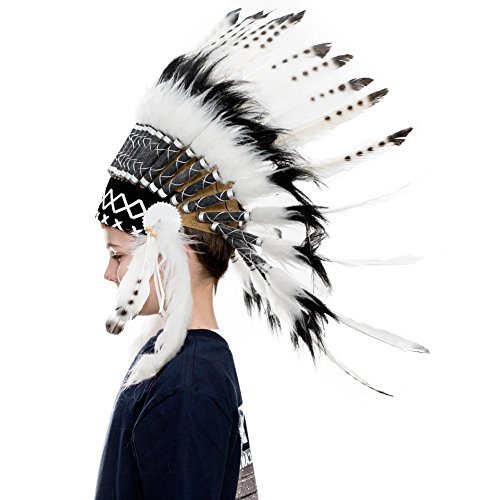 This beautiful Indian Style Headdress is handmade and features stunning and 100% authentic feathers as well as stylish Native American Style beadwork in the front. The beads on the forehead can vary in color and design as we try to keep every headdress unique. It can be worn for various occasions. You can browse our full selection by clicking on our shop at the top under "Novum CraftsÓ. Our headdresses are designed and made by artisans in Bali, Indonesia and inspired by traditional Native American headdresses. They are not made by Native Americans and are not meant to be interpreted as authentic "Native American products".Feature
