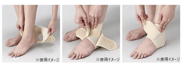 立体圧迫構造で足首をしっかりサポートします。通気性の良いメッシュ素材です。