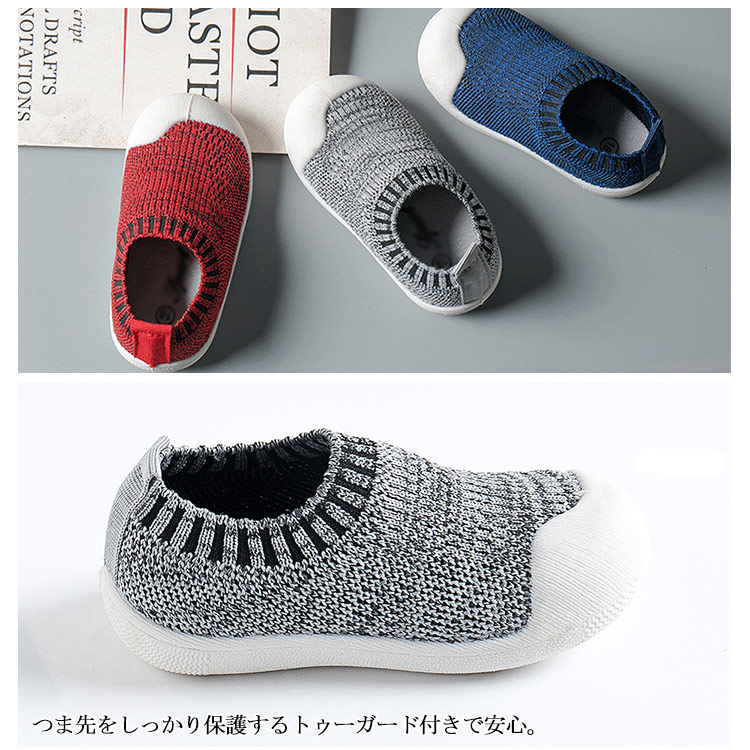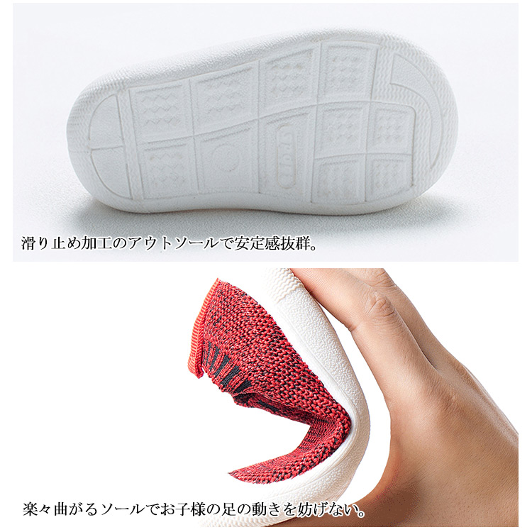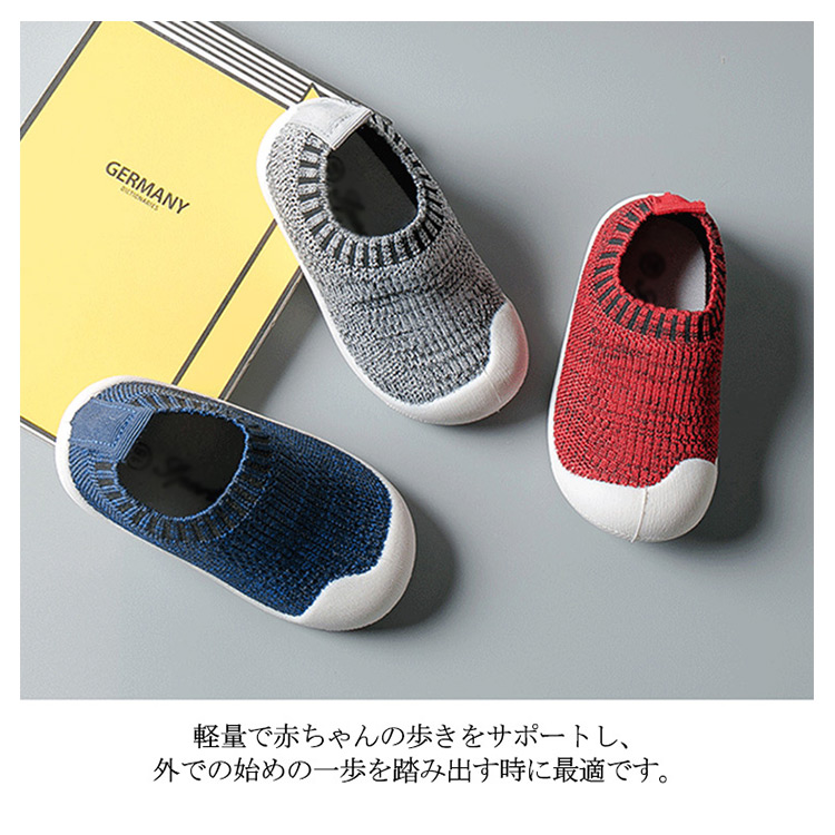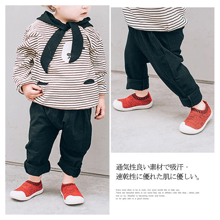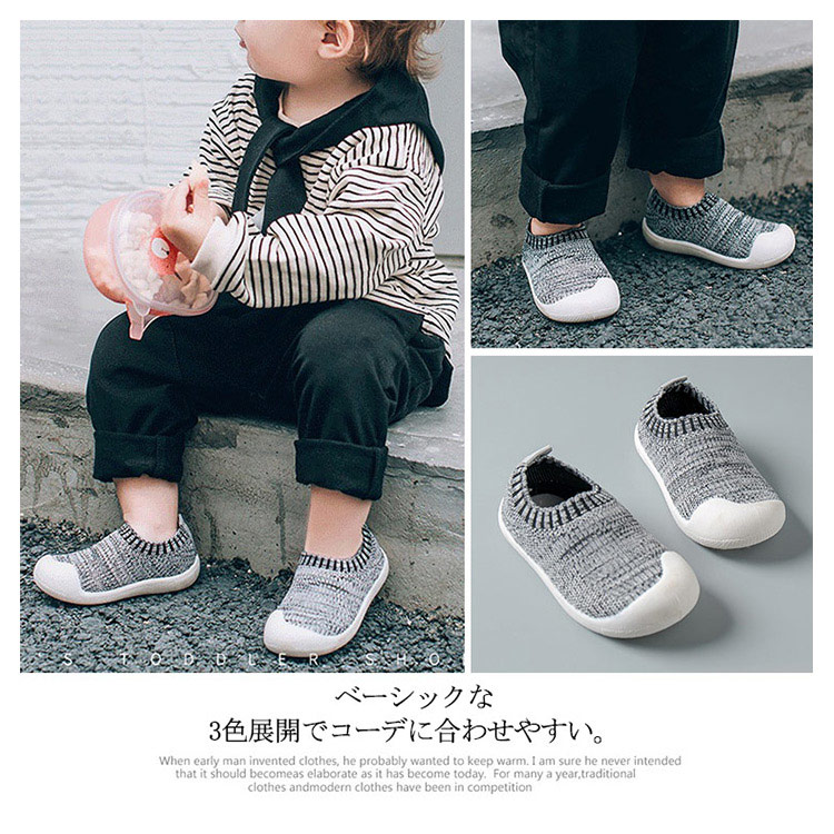| 元気なキッズにも履きやすい大活躍スニーカー!ベーシックな3色展開でコーデに合わせやすい。通気性良い素材で吸汗?速乾性に優れた肌に優しい。歩き始めの1足として、足元をかわいらしく印象的に演出する。軽量で赤ちゃんの歩きをサポートし、外での始めの一歩を踏み出す時に最適です。出産&誕生祝いにも喜ばれます。 | |