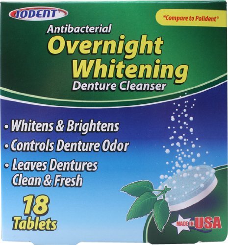 -. Feature : Antibacterial overnight whitening denture cleanser. Whitens & brightens, controls denture odor, and leaves dentures clean & fresh. Compare to Polident